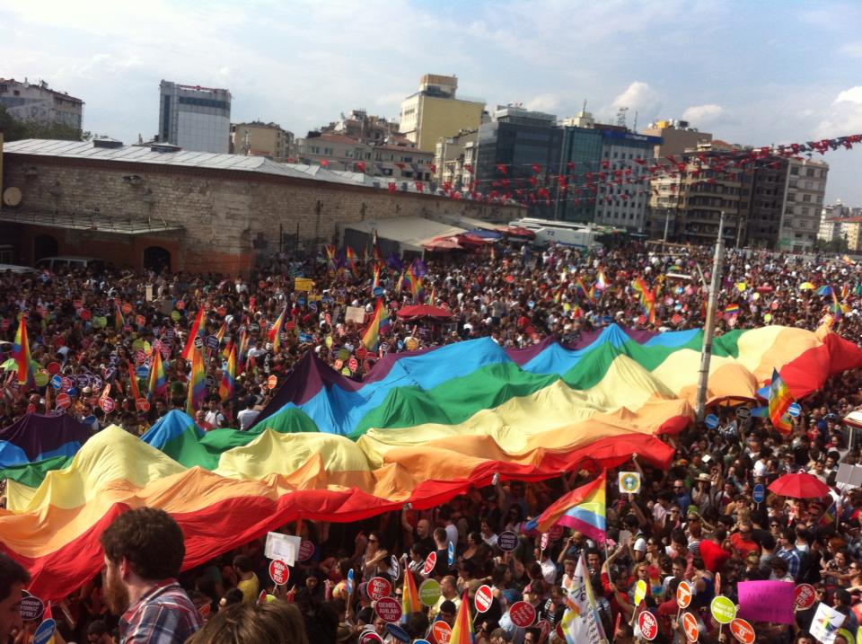 11. İstanbul LGBT Onur Yürüyüşü Galatasaray Meydanı’ndan Taksim Meydanı’na doğru on binleri bulan katılımla gerçekleştiriliyor.