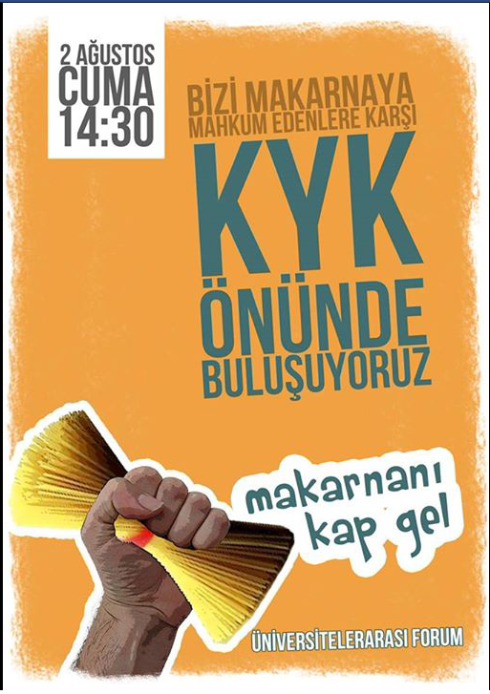 “ÖĞRENCİ MAKARNA YER, ONURLU YAŞAR” DEMEYE ÇAĞIRIYOR.