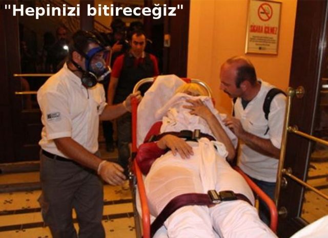 “20-30 kişilik bir çevik kuvvet grubu içeri girer girmez üzerimize saldırdı. İnsanların kafalarına coplarla vuruyorlardı. Kollarımdan çekiştirerek beni hırpaladılar. Aralarından bir tanesi elimdeki solüsyonu alıp yere fırlatarak “Bununla ne yapıyorsun o…spu’’ dedi. Solüsyonu defalarca yere atıp kaldırmamı istedi. Sonra da zorla elime tutuşturup küfür ederek, ‘Siz kimsiniz hükümete başkaldırıyorsunuz. Hepinizi bitireceğiz’ dedi. Ailemi aramama izin vermediler. Sonra yanımda oturan sivil biri birden yüzüme vurdu. ‘Ne oluyor?’ dedim. Polis bana ‘Tanımıyor musun? Bak senin arkadaşın seni dövüyor. Burada yapayalnız kaldın. Hani devrim yapacaktınız? Sürü halinde dolaşıyorsunuz. Hadi gelip seni kurtarsınlar?’ diyerek hakaret etmeye devam ettiler. Daha sonra sordum o bana vuranın kim olduğunu olaylarla ilgisi olmayan biriymiş kapıyı açık görünce gazdan kaçmış içeri girmiş . İki tane sabıkası varmış uyuşturucudan ve yaralamadan. Sürekli uzaktan beni tehdit ediyordu bir şeyler mırıldanıyordu. Küfür ediyordu, ama polisler hiçbir şey yapmıyordu. Astımım ağırlaştı. Ağlamaya başlayınca beni rahat bıraktılar. Sanırım bütün amaçları beni ağlatmaktı. Kendi aralarında konuşurken de ‘Onun kafasına attım, şunun bacağını kırdım’ diye kendileriyle övünüyorlardı. ”