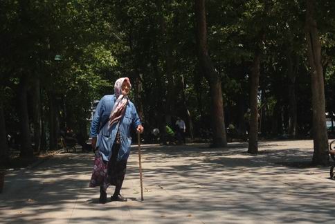 Yaşlı, başörtülü bir kadın nasıl olduysa içeri girmeyi becermiş, yavaş yavaş yürüyerek parkı gözlemliyor, polislerle konuşuyor. ‘‘Ağaçları kesmeyin, gölgelerinde dinlenelim’’ demek için gelmiş. Belediyenin ağaç diktiğini öğrenince şaşırıyor, şüpheli bir ifadeyle uzaklaşıyor.
