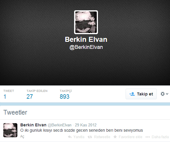 Berkin, 29 Kasım 2012 tarihinde attığı tweet’te ‘O iki günlük kisiyi seçti, sözde geçen seneden beri beni seviyomuş. ‘ diyor.
