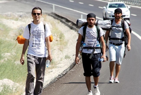 Antalya Cumhuriyet Meydanı’ndan 18 Temmuz Perşembe günü, İstanbul Gezi Parkı’na kadar sürecek ‘Adalet Yürüyüşü’ başlatan Kadir Canbek, Ulaş Çakar, Canberk Apiş ve Batuhan Yücel, yürüyüşün ikinci gününde Burdur’un Bucak İlçesi’ne ulaştı.